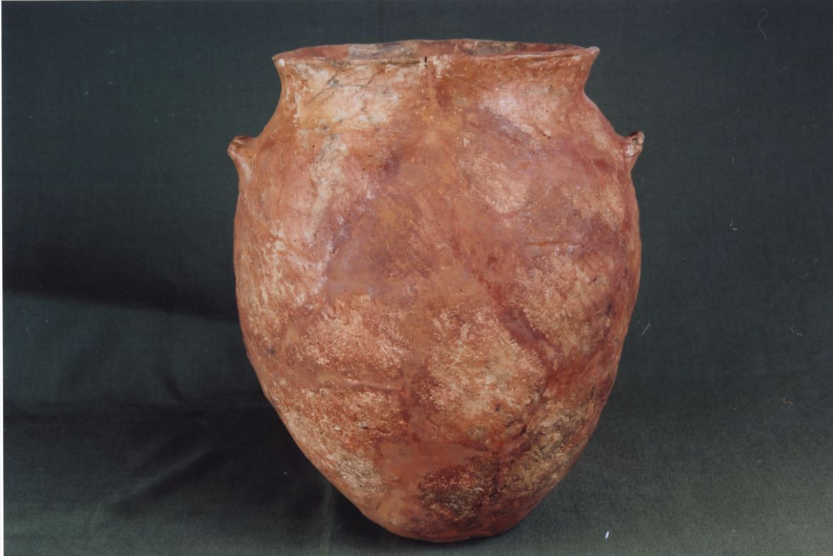 two-handled cups, and large pithoi decorated with finger-impressed, rope and overlapping disk